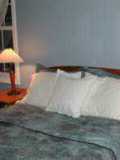 The more restful shade of blue is the silvery blue because it is greyed down. It tends to blend and recede as a restful backdrop and is perfect for any bedroom.