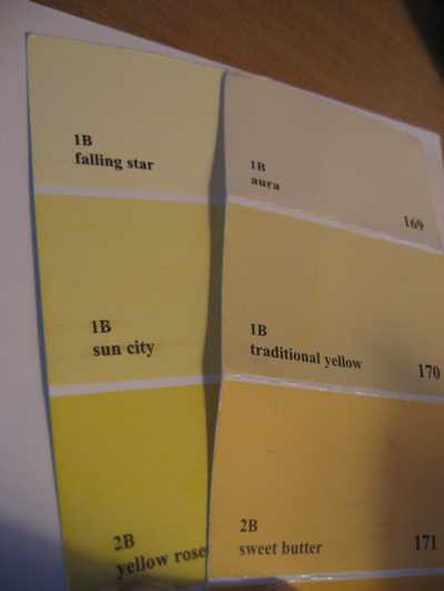 If you have a Benjamin Moore fan deck (or you’re headed to the paint store) check out the difference between sun city (352) and traditional yellow (170). The effect on a room is huge. Although the lemon yellow looks great on the paint chip, picture your whole room in that color. Acrid comes to mind. On the other hand, the orangey lemon is warm and enveloping, like the glow from a candle. If you do decide to use a lemon on your walls, you can temper the color with lots of white and black.