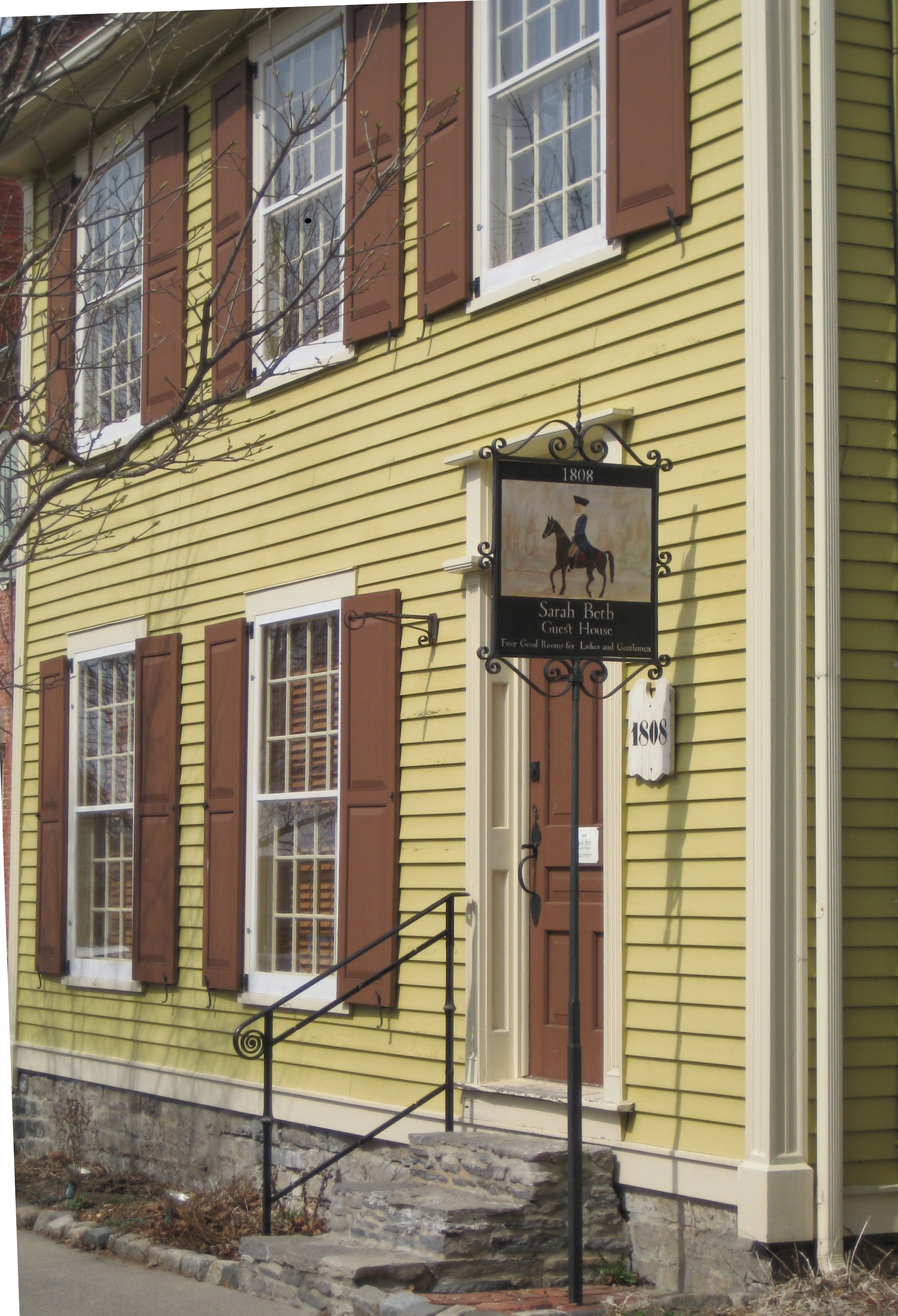 The unexpected color combination on this historic home (now a B&B in Sackets Harbor, NY) really pops off the street. Whether it’s the hint of green in the gold siding, the Jamaican rum-like warmth of the shutters, or simply the combination, I’m not sure. But coupled with cream trim and accents of black, this combination is a winner.