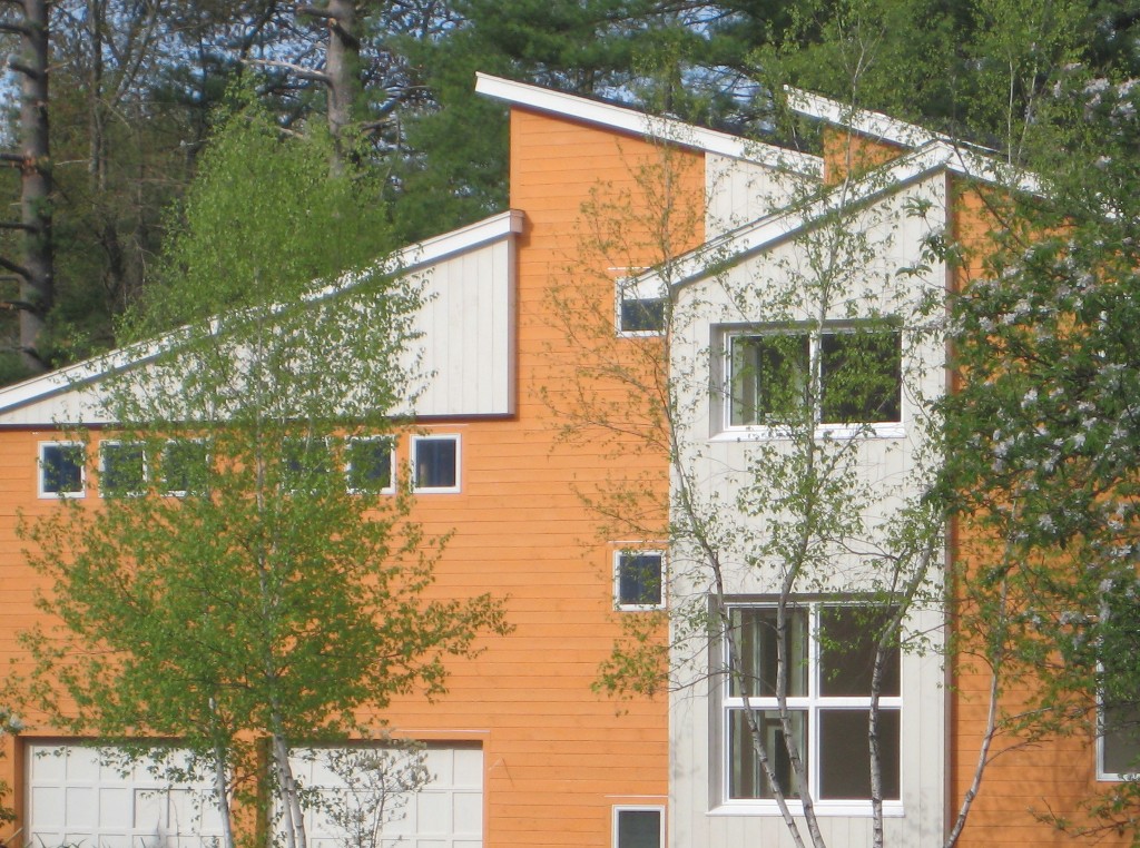 The stucco example here is a house turned patisserie on the grounds of Versailles in France. The other example is a modern home, one of the creative designs by Victoria Mohar of MoharDesign in Somerville, Massachusetts. It is so refreshing to see creative color combinations that work and that push the house color envelope a bit.