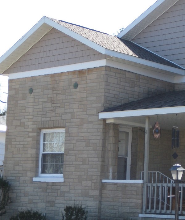 Blond brick and light-colored stone seem to pose challenges when it comes to picking coordinating paint colors for siding and trim. This house does it right. The taupe siding color comes right out of the aging blond brick, giving the house an updated look. Taupe allows the brick to show off its depth of color, including other shades of browns and peaches, without adding another hue to the mix. You cannot go wrong with neutrals, especially when you’re dealing with stone and brick.