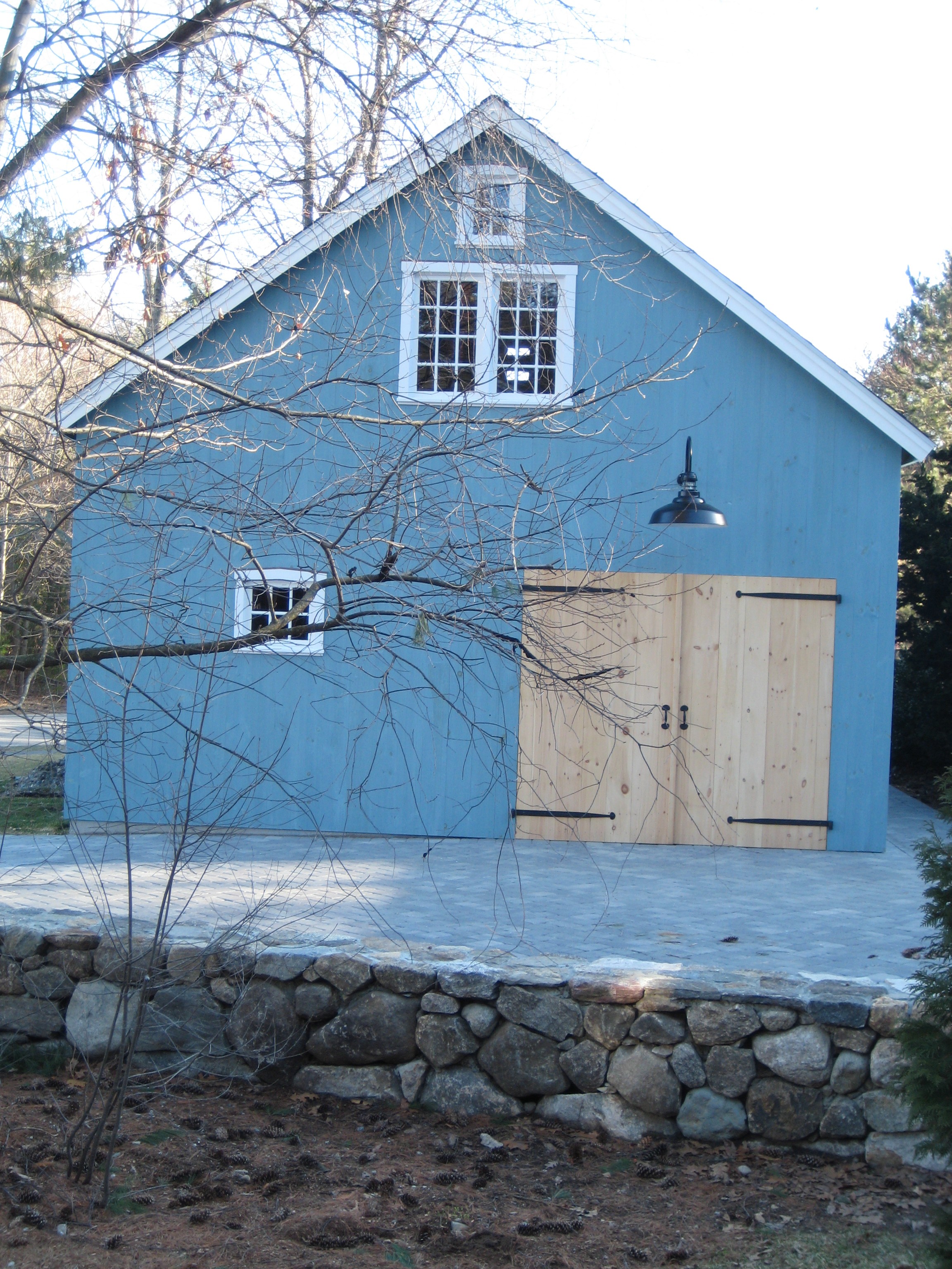 Here’s another example of a big barn (it also has a cupula out of view), but it has an appropriately scaled light fixture above the door. This blue barn has my vote. Nice!