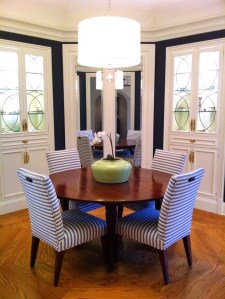 Okay, I admit it. I am a consignment store junkie. And with good reason. Not only is it “green” to furnish your home with items that have been around awhile, it’s amazing what you can find for a fraction of the retail price for a new item. And the consignment bug has started to spread to my clients. During one project, we were looking for a settee of a specific length to fit in a tight spot. Tricky to find new anyway unless we went custom. My client decided to check out the local consignment store, and he found the perfect piece. Even the legs and wood color were perfect. Call it luck or call it karma.
