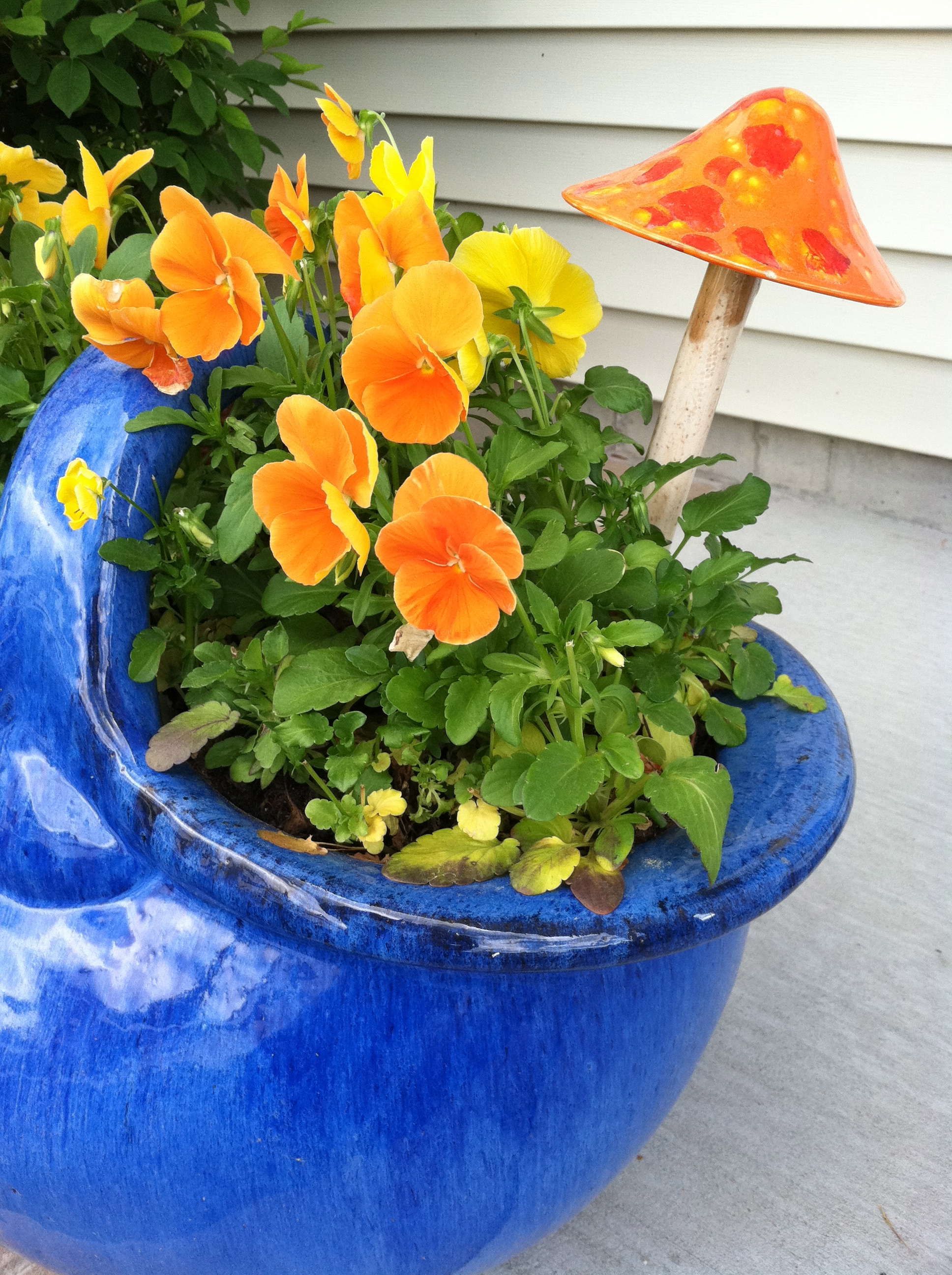 It may seem obvious, but opposites attract. And when it comes to color, opposites attract attention! These bright orange pansies are the perfect complement to the rich azure blue ceramic basket on the front step of this home. Orange and blue are opposites on the color wheel and, because of that, they give each other a vibrant visual energy that draws your eye. Cheerful, welcoming, fun — everything you want your house to say.